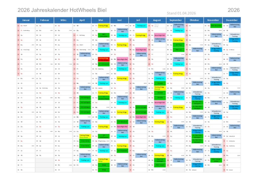 Mach mit in unserer NachwuchsgruppeIch will mehr wissen … Besuche ein Schnuppertraining! Klick rein:https://youtu.be/ArpqyhdxsI8 Weiterlesen ->Jahresrückblick 2025Jahresrückblick 2025 Weiterlesen -> Jahresprogramm2025_Jahresprogramm HotWheels BielHerunterladen Weiterlesen -> HotWheels-Biel organisiert die Skate Night Biel Wir danken unseren Sponsoren